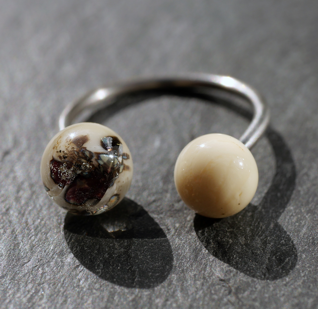 Prstýnek z béžového vinutého skla – nerez ocel.